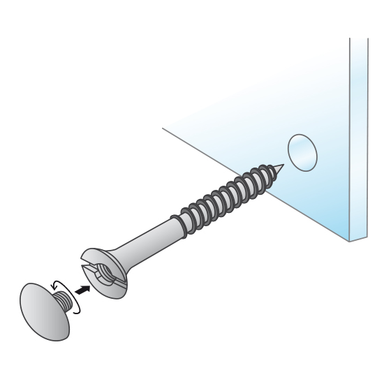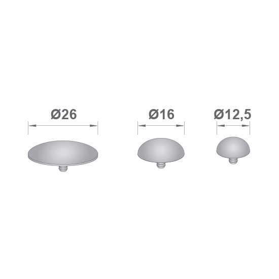 Fixador de painel/grafismo à parede, metálico em forma de cápsula de topo hemisférico, composto por uma cápsula com rosca própria para a cabeça do parafuso (não incluído), o qual fixa à parede através do sistema convencional (bucha), apertando assim o painel/grafismo contra a parede. Os diâmetros de 12,5mm, 16mm e 26mm utilizam o parafuso EasyCover do tipo 2.