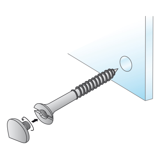 Fixador de painel/grafismo à parede, metálico em forma de cápsula de topo cónico, composto por uma cápsula com rosca própria para a cabeça do parafuso (não incluído), o qual fixa à parede através do sistema convencional (bucha), apertando assim o painel/grafismo contra a parede. O diâmetro de 17,5mm utiliza o parafuso EasyCover do tipo 2.