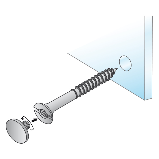 Fixador de painel/grafismo à parede, metálico (bronze) em forma de cápsula, composto por uma cápsula com rosca própria para a cabeça do parafuso (não incluído), o qual fixa à parede através do sistema convencional (bucha), apertando assim o painel/grafismo contra a parede. Os diâmetros de 10mm e 13mm utilizam o parafuso EasyCover do tipo 1, os restantes diâmetros utilizam o parafuso EasyCover do tipo 2.