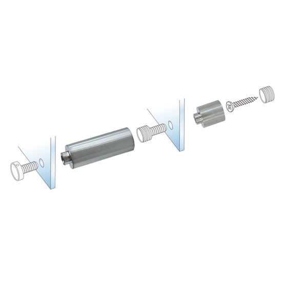 Afastador do Fixador/Distanciador Roscado Multicamada - Fixador de painel/grafismo à parede, metálico (alumínio), idêntico aos distanciadores tradicionais, contudo este sistema permite construir grafismos com base em várias camadas (níveis), tendo para o efeito uma peça (espaçador), que permite suportar-se num painel e fixar noutro. Disponível em várias medidas.