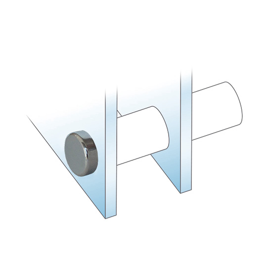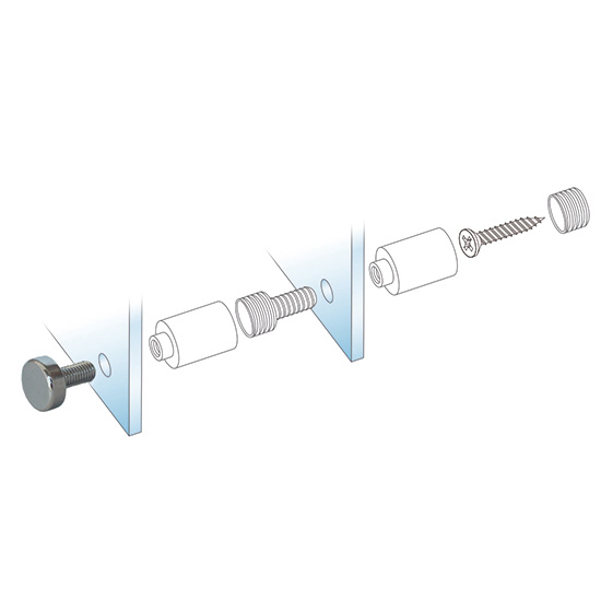 Topo Plano do Fixador/Distanciador Roscado Multicamada - Fixador de painel/grafismo à parede, metálico (alumínio), idêntico aos distanciadores tradicionais, contudo este sistema permite construir grafismos com base em várias camadas (níveis), tendo para o efeito uma peça (espaçador), que permite suportar-se num painel e fixar noutro. Disponível em várias medidas.